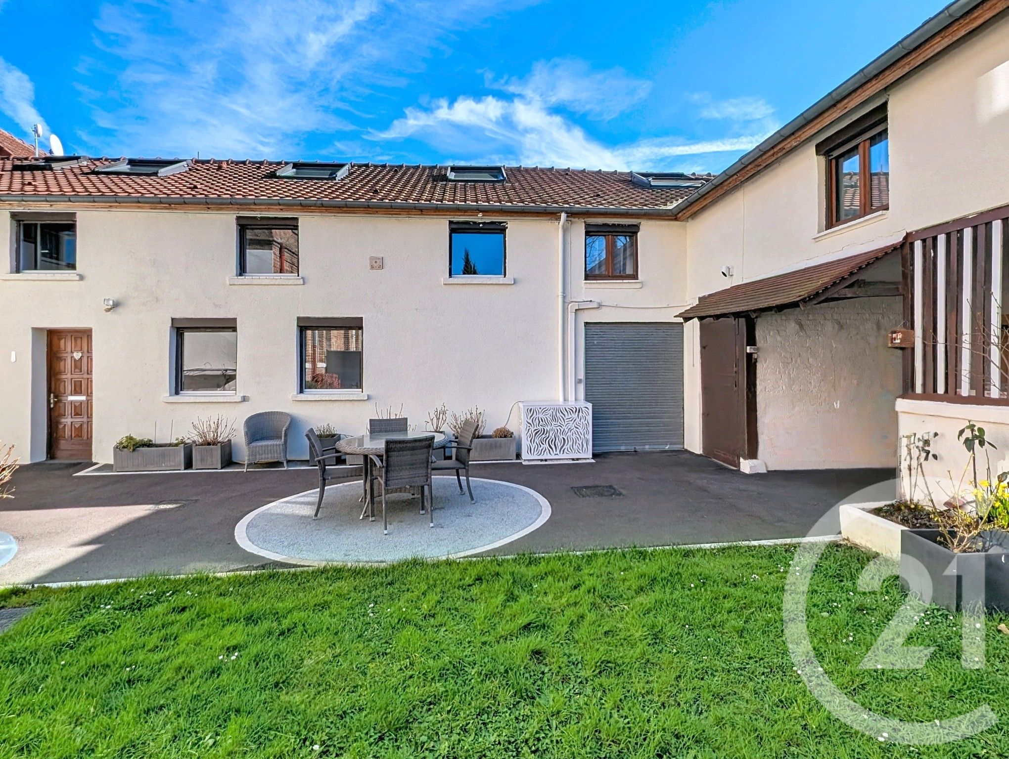 Dans le secteur historique et recherché de la cité Menier à Noisiel, venez découvrir ce bien à l'esprit loft. Derrière une classique porte cochère, vous arrivez devant la maison donnant sur une cour et un jardin. Au rdc de la maison vous trouvez une grande entrée desservant une chambre, un bureau, une salle d'eau avec espace buanderie et des W.C. Un escalier sur la gauche de l'entrée, vous amène à la pièce a vivre refaite récemment avec cuisine ouverte, espace salle à manger puis salon. Une porte dessert l'espace chambres où une pièce palière aménagée en bibliothèque dessert 2 belles chambres, un bureau en enfilade d'une chambre, et également une salle d'eau avec W.C. Vous aurez également de nombreux rangements au rdc. Côté quartier, vous serez au cœur de la cité Menier avec de nombreux commerçants : pharmacie, coiffeur, superette, fleuriste, boulangerie Pour les transports des bus vous amène à la gare RER A de Noisiel ou Torcy en 10 minutes. Venez vous laisser charmer !